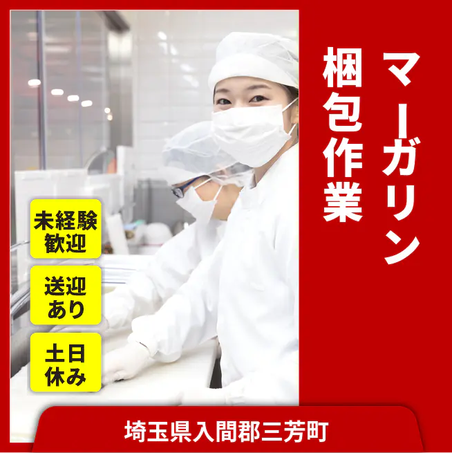 安心の昼勤務【マーガリン梱包作業】初めてでも安心スタート!車でラクラク通勤★安定企業の一員になろう♪