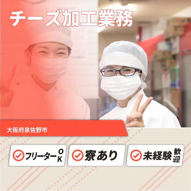 安心の昼勤務【チーズ加工業務】未経験でも安心スタート!社宅完備で新生活もスムーズ♪車通勤OKで快適に働ける!