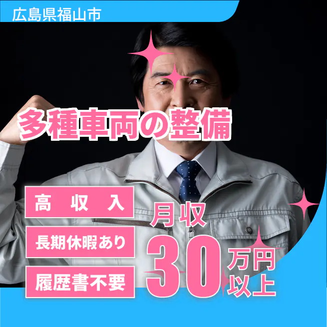 ・自動車整備士3級の資格と経験 ・外気温と同じ作業環境が問題ない方 ・10キロ程度の重量物対応が問題ない方 ・オイル等で汚れる職場環境に抵抗がない方