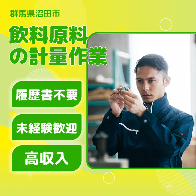 気軽に応募!【飲料原料の計量作業】未経験でも安心スタート!研修充実で新しい仲間と一緒に成長しよう♪